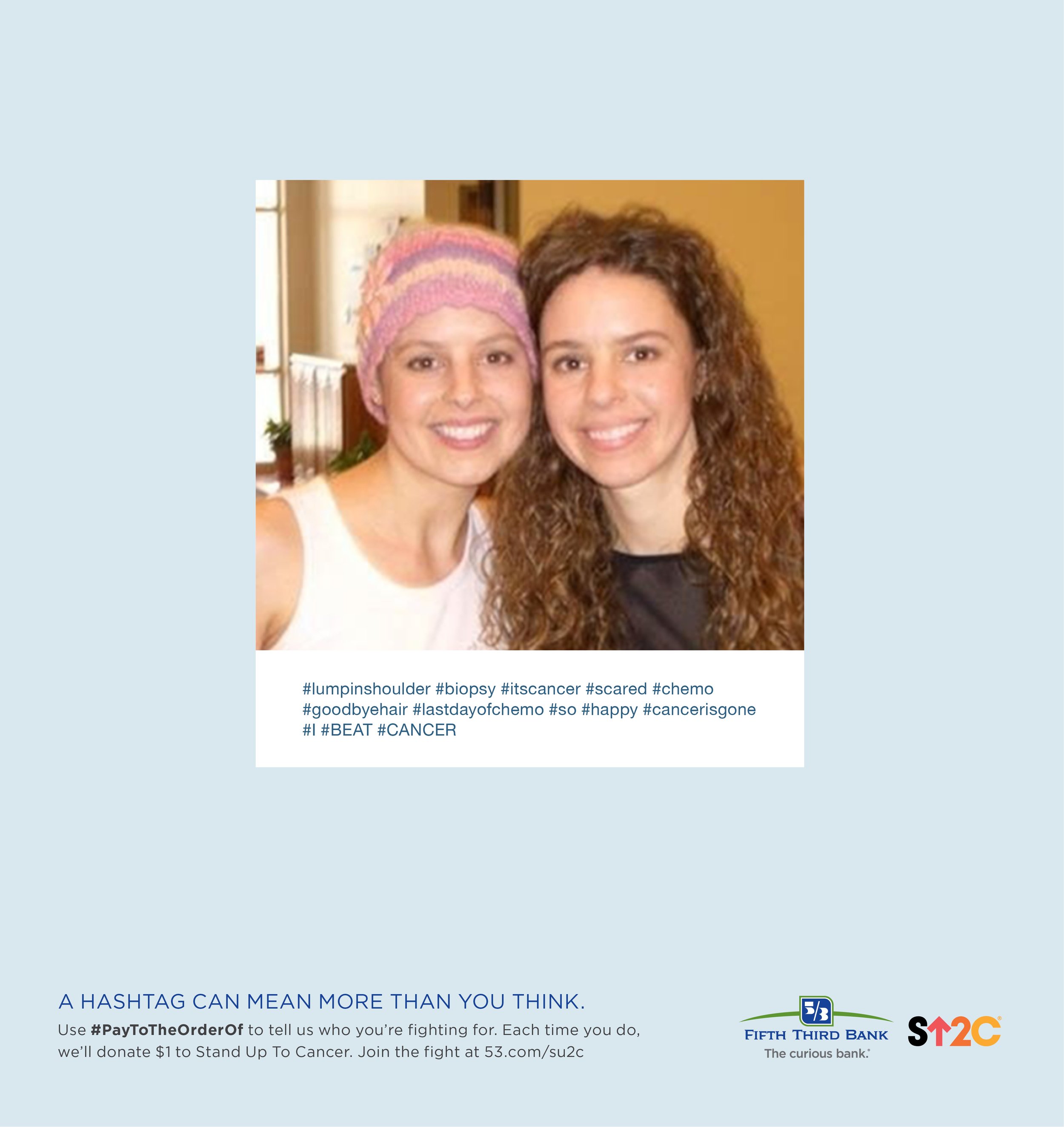 Use #PayToTheOrderOf to tell us who you're fighting for. Each time you do, we'll donate $1 to Stand Up To Cancer. Join the fight at 53.com/su2c