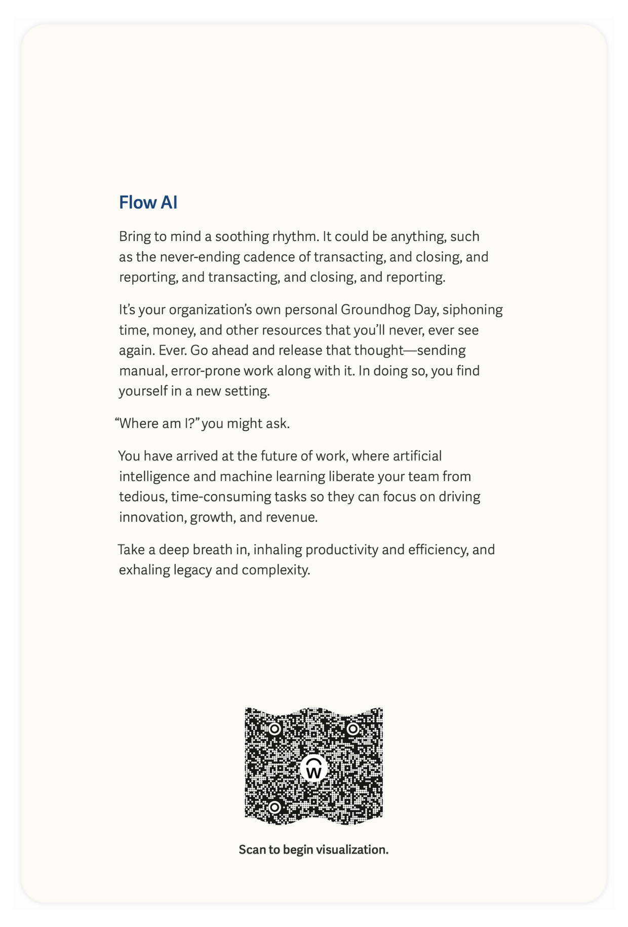 Workday, "Tranquil Transformations"We were tasked with creating a mailer for our accounts-based marketing team to help sales teams to get a meeting with various CFOs. The problem is that accounting and finance folks are like my memaw and papaw, “If it ain’t broke. Don’t fix it.”